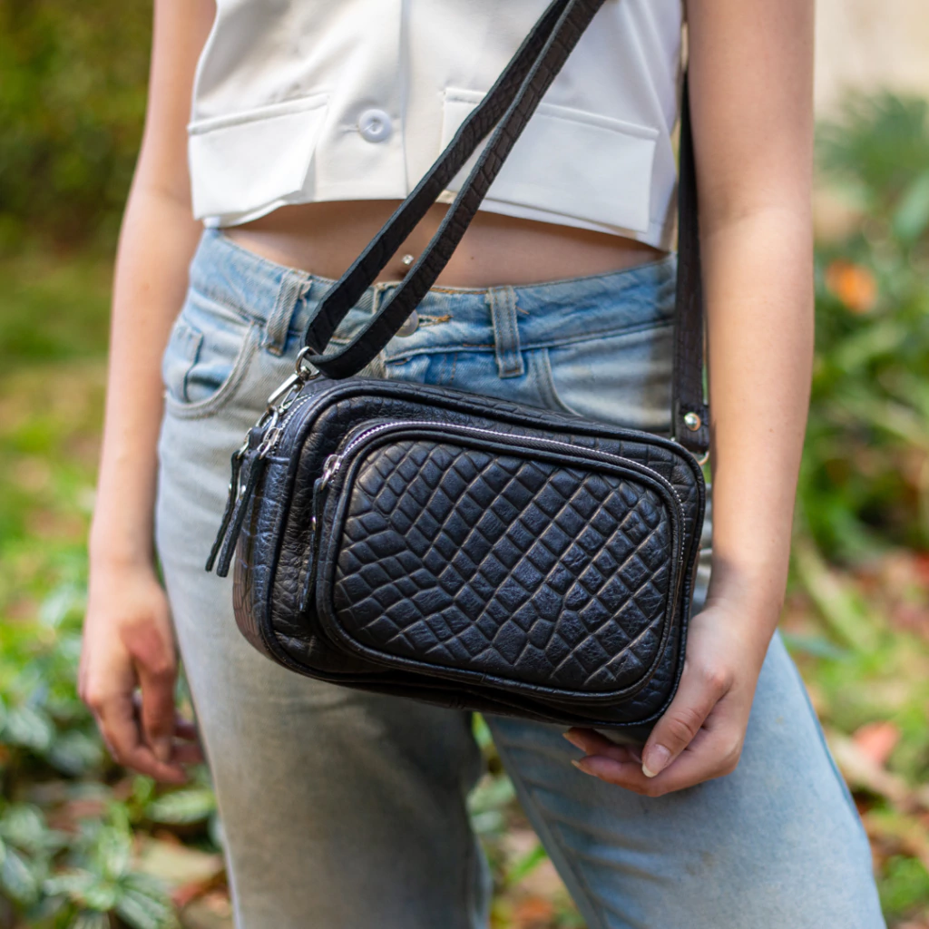 La Brunei XL es la combinación perfecta de diseño y practicidad. Su tamaño ideal te permite llevar lo esencial de forma cómoda y organizada, sin sacrificar estilo. Confeccionada en cuero vacuno curtido vegetal grabado caimán, es un accesorio versátil que se adapta a diferentes estilos y ocasiones, destacándose por su durabilidad y resistencia al uso diario.